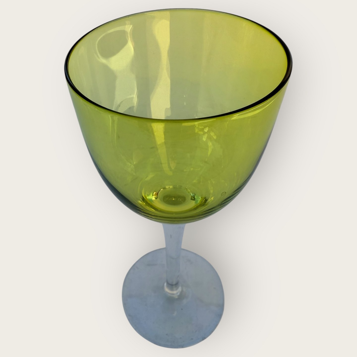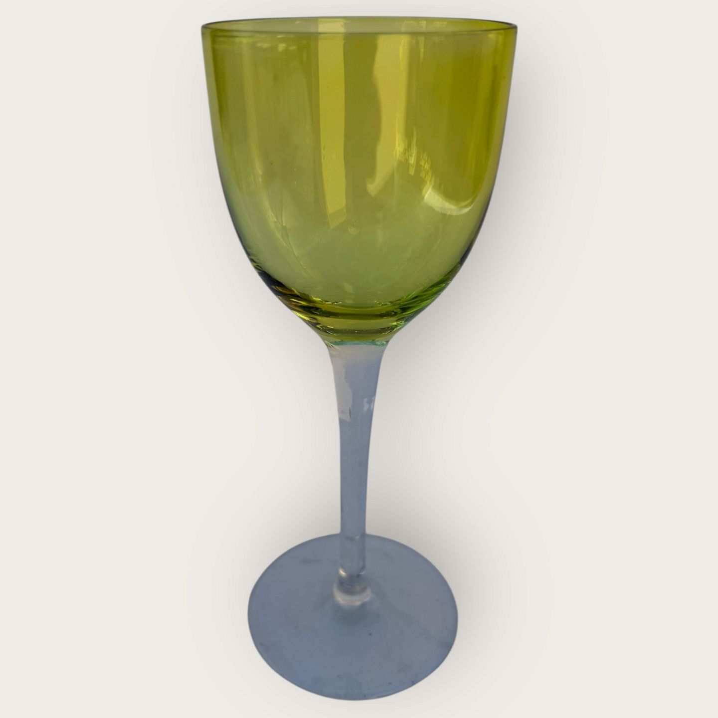 Baccarat, Perfection, Rhine wine glass on a high stem and with a green bowl, 19cm high, fine condition.