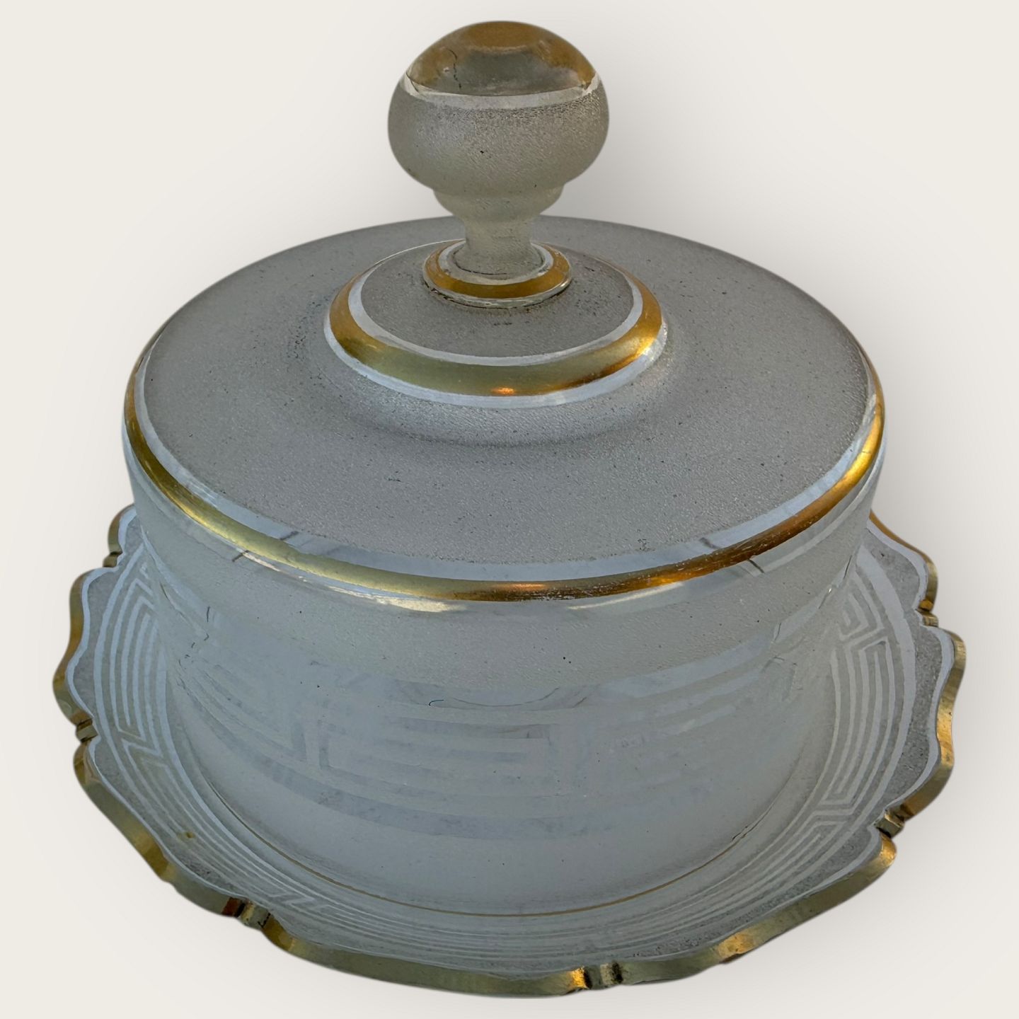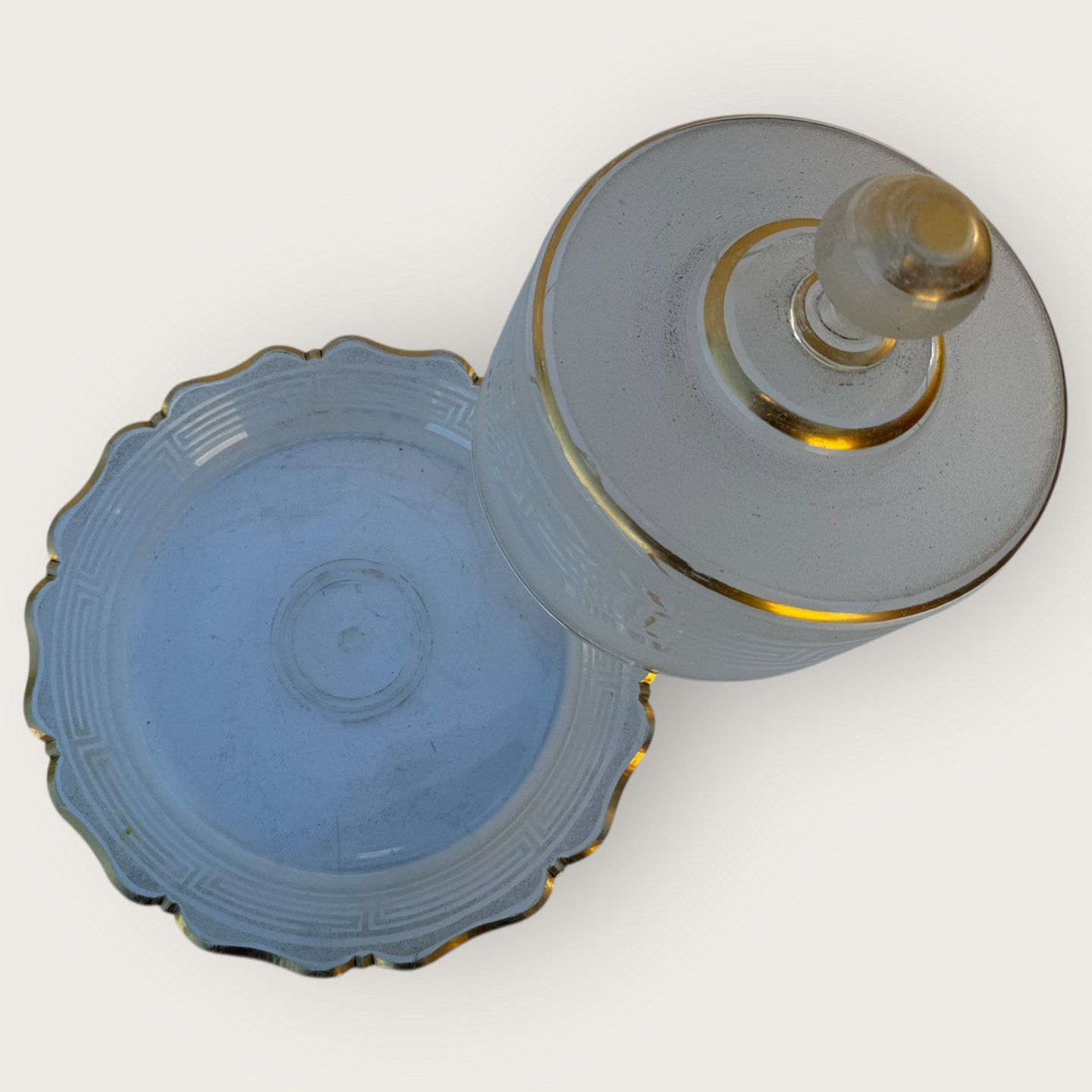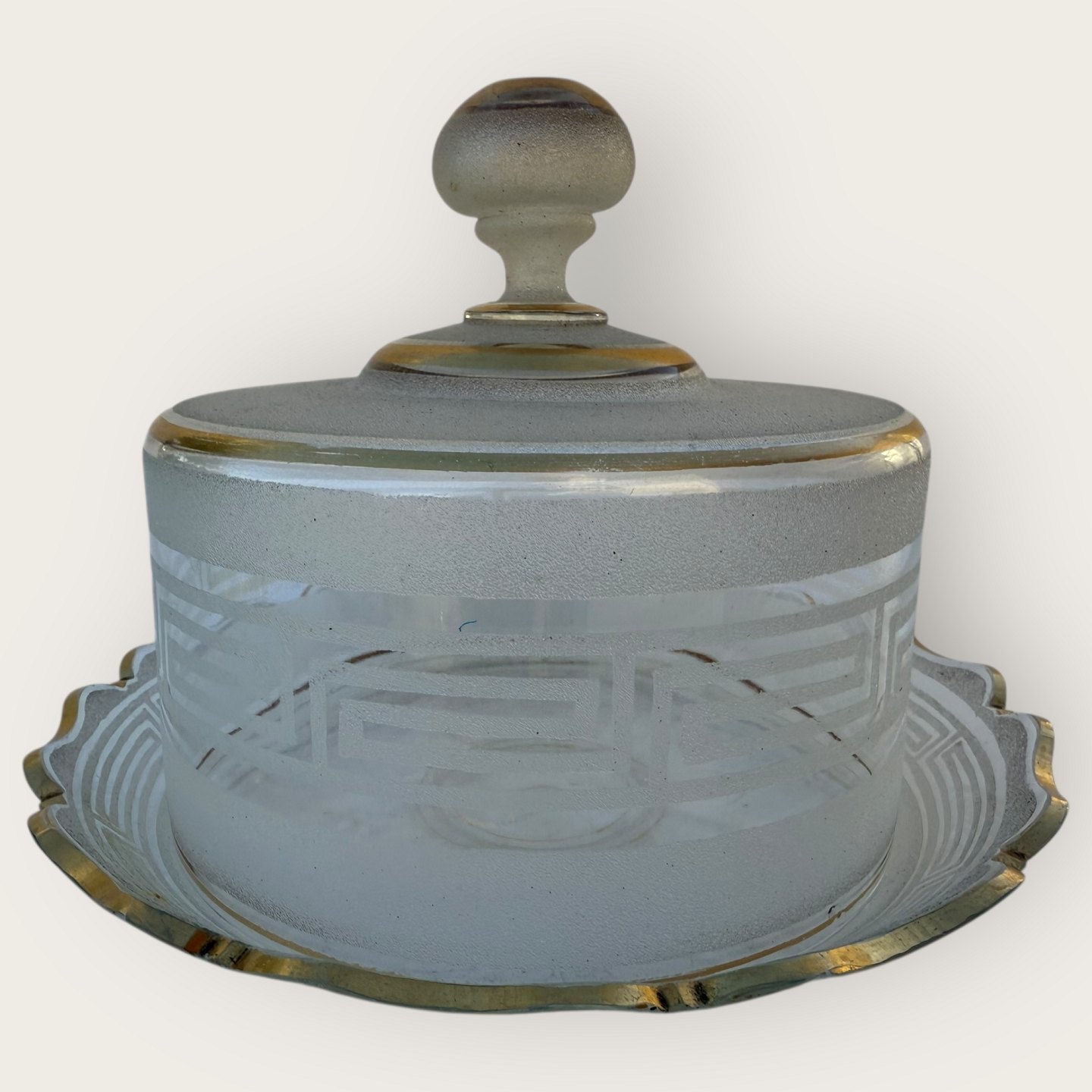 Food bell in frosted glass with gold paint, some patina on the gold, otherwise fine condition, diameter 23cm, height 15cm