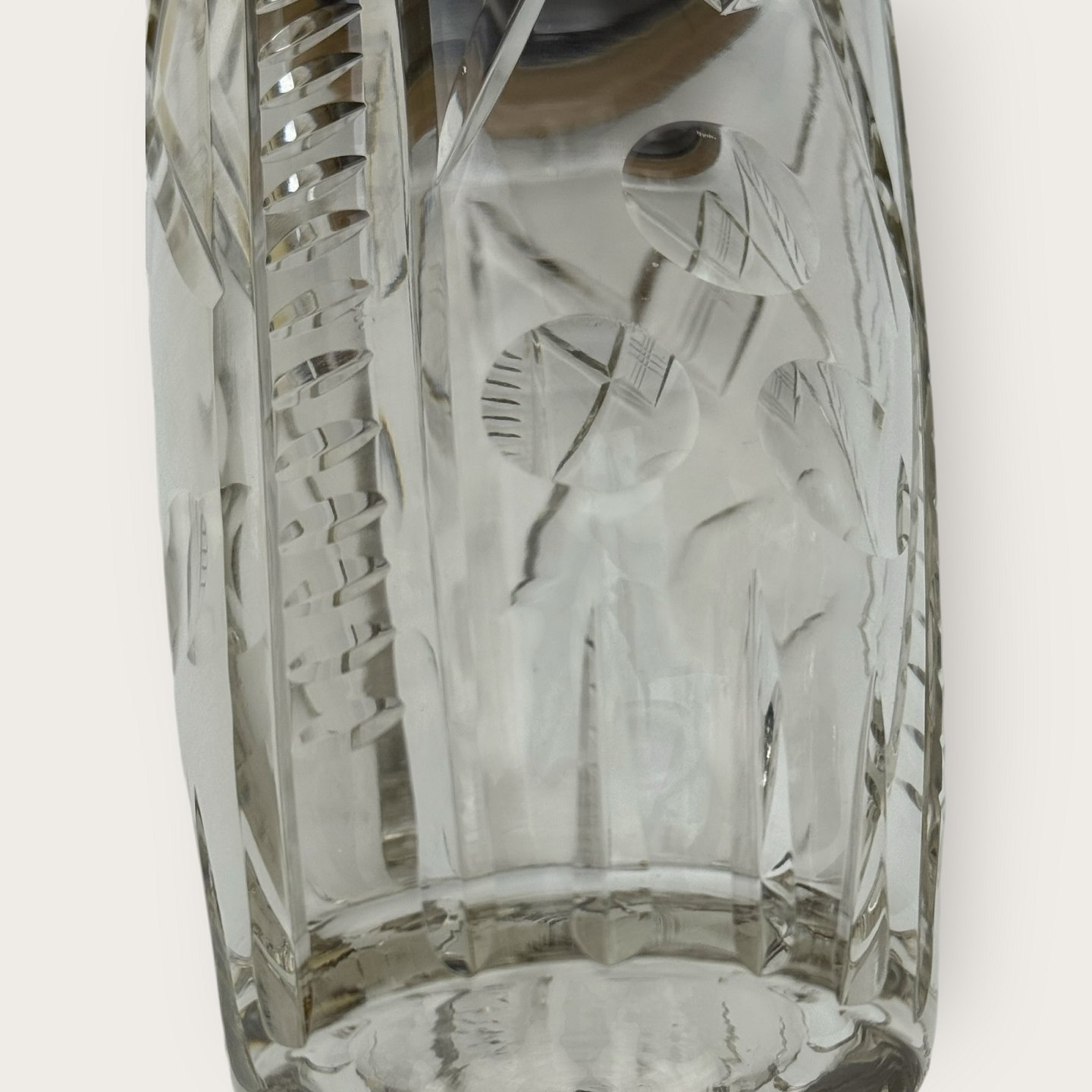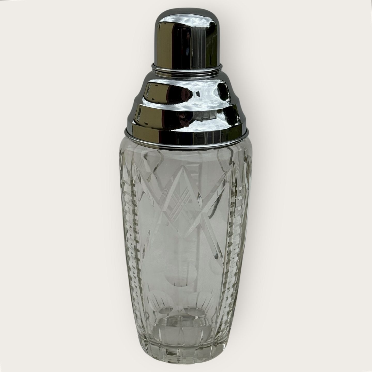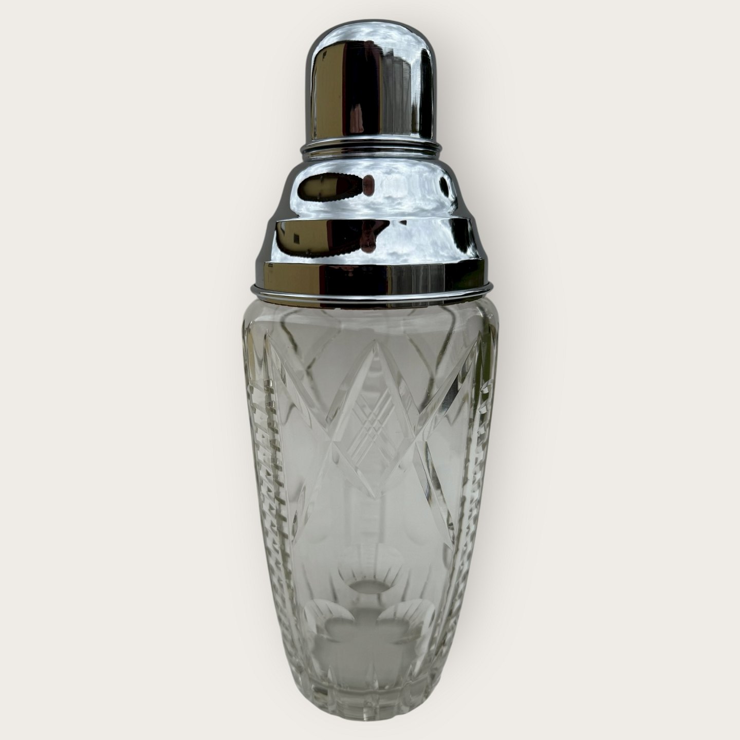 Older cocktail shaker in thick glass and with many cuts, height 25cm, great condition