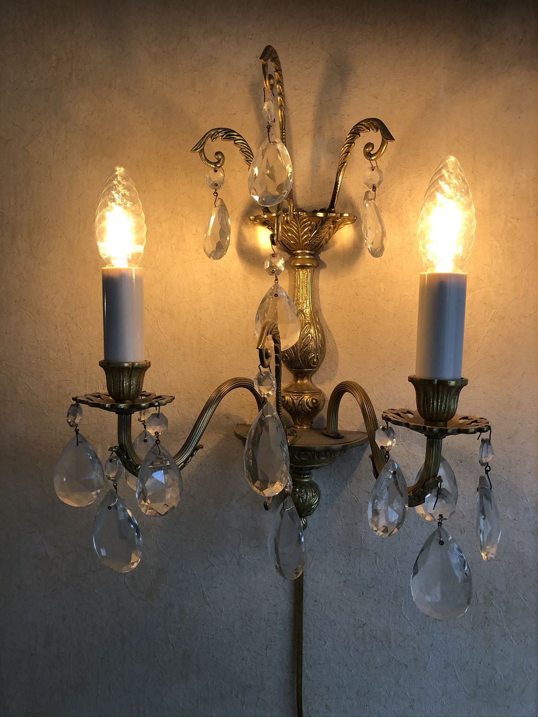 2 Wandleuchten mit Glasprismen in gutem Zustand.