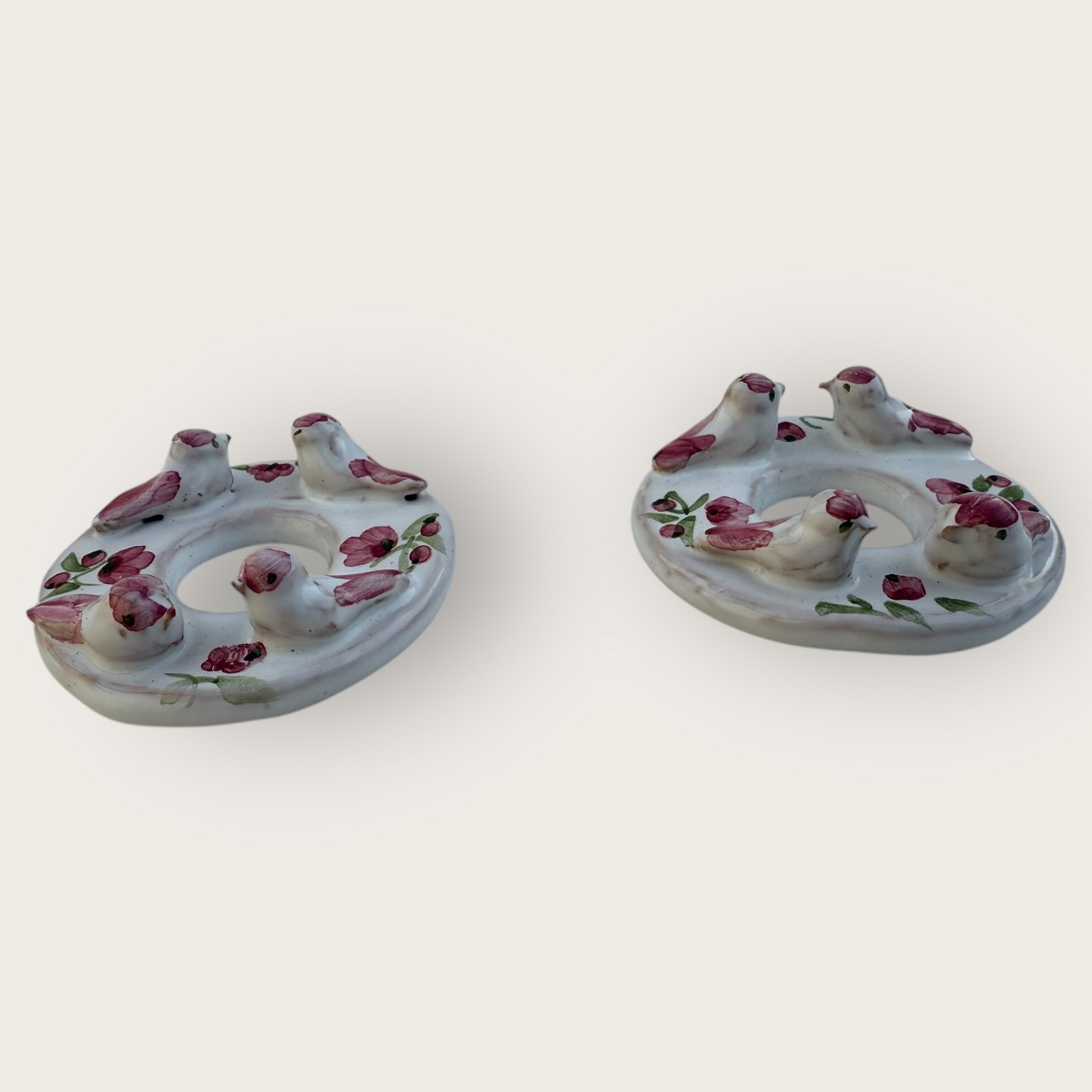 Torben Ceramics, A set of candle cuffs with red birds, diameter 6cm, fine condition