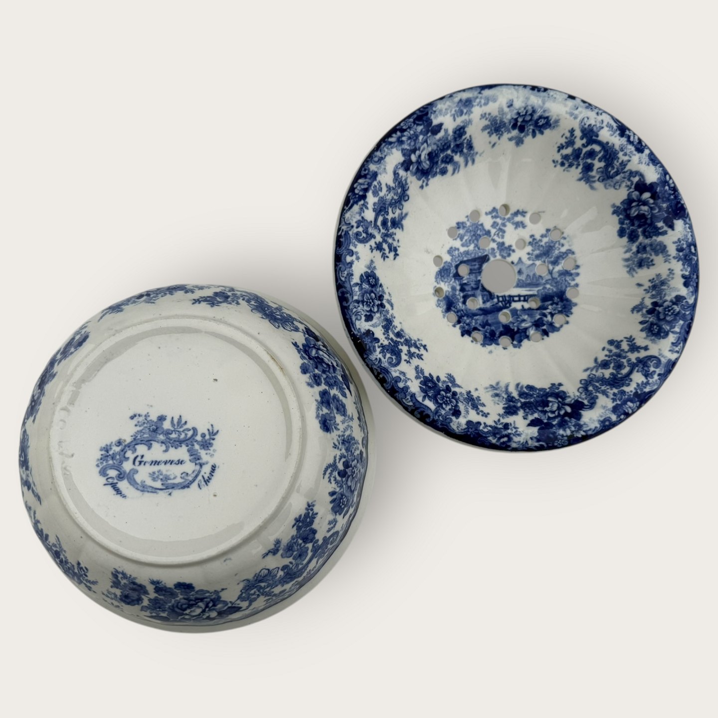 Genovese Opaque China, Faience bowl with strainer, diameter 19.5cm height 7cm, nice used condition