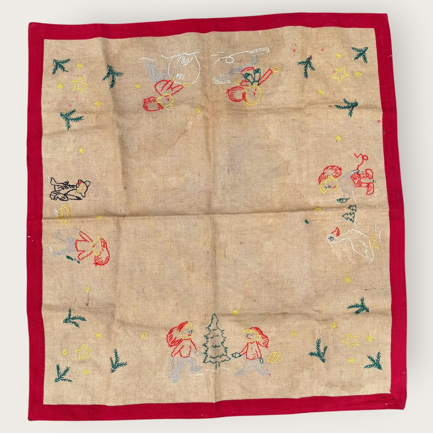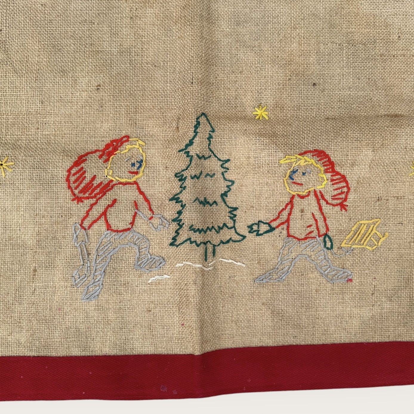Christmas tree blanket, Embroidery with Christmas motif, 100cm / 95cm *Nice patinated condition*