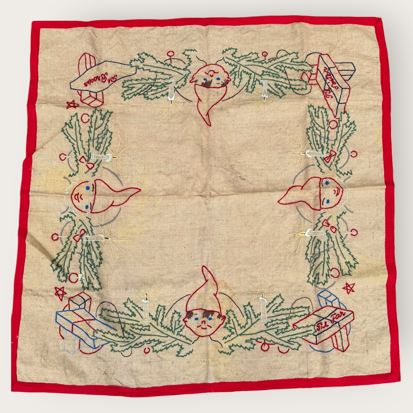 Christmas tree blanket, Embroidery with Christmas motif, 120cm / 120cm *Nice patinated condition*