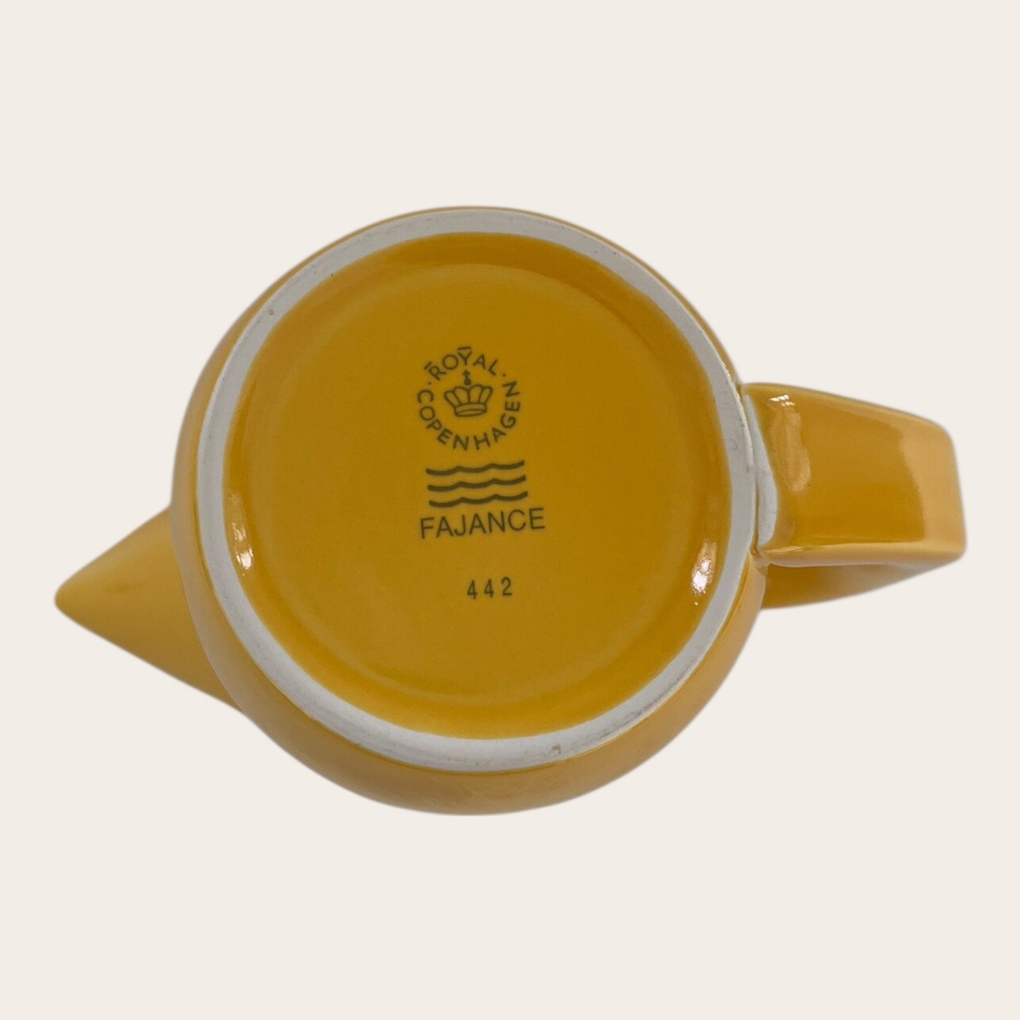 Royal Copenhagen, Aluminia, Ursula, Jug with handle, Yellow #442, 1st sorting, 13.5cm high, 17cm wide, Design Ursula Munch Petersen *Good condition* (see also lid for jug ​​item no. 629130)