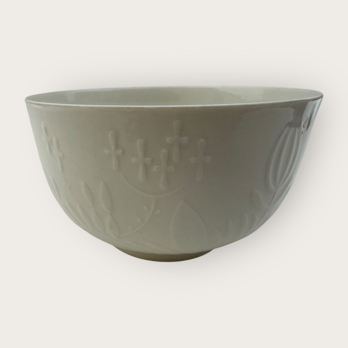 Royal Copenhagen, #4129, skål i blanc de chine med reliefmønster af bl.a. blomster og blade, diameter 15cm, højde 9cm *Pæn stand*