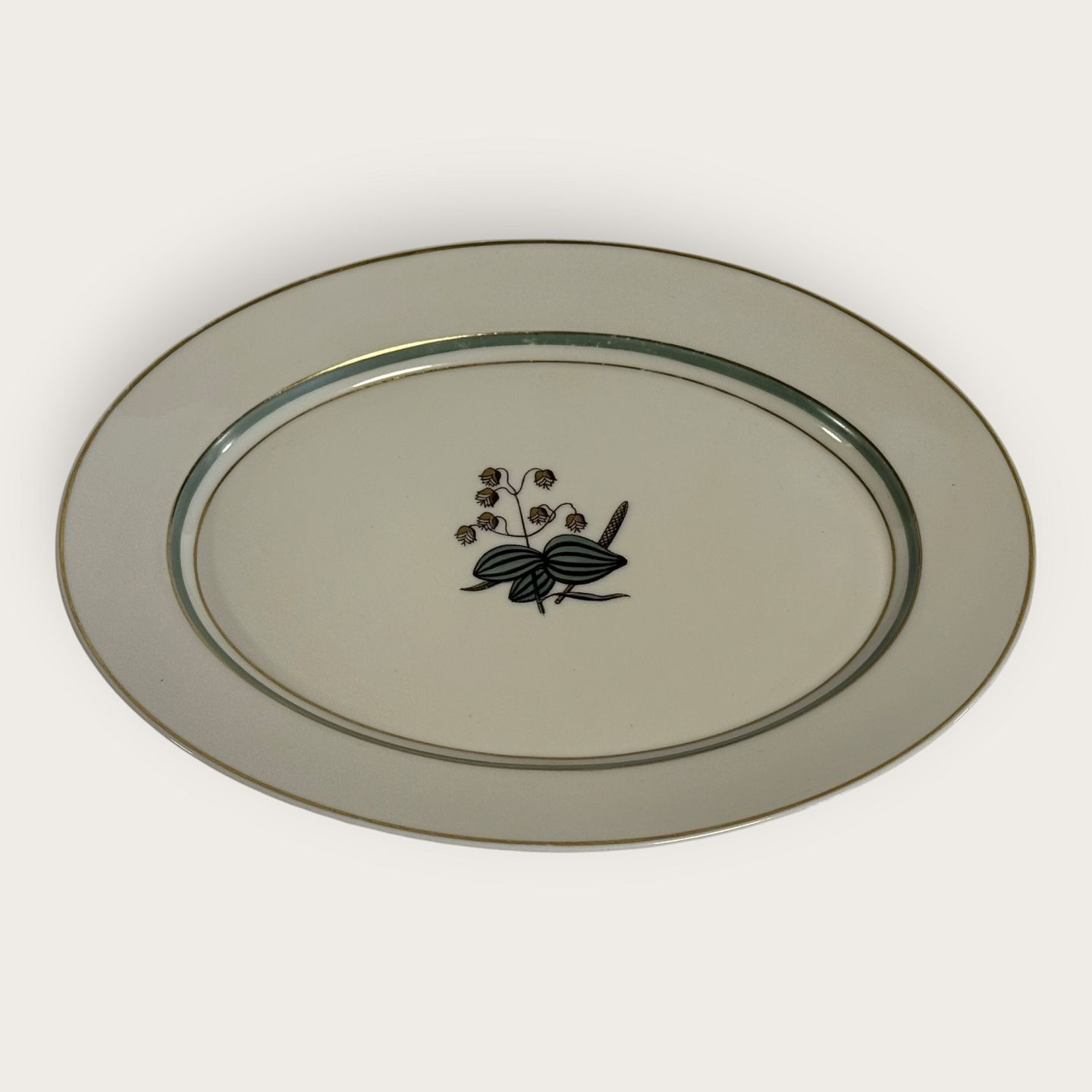Royal Copenhagen, Heartgrass, Oval dish #884/9583, 27.5x20.5cm Design Thorkild Olsen *Nice used condition with some wear on the gold edge*