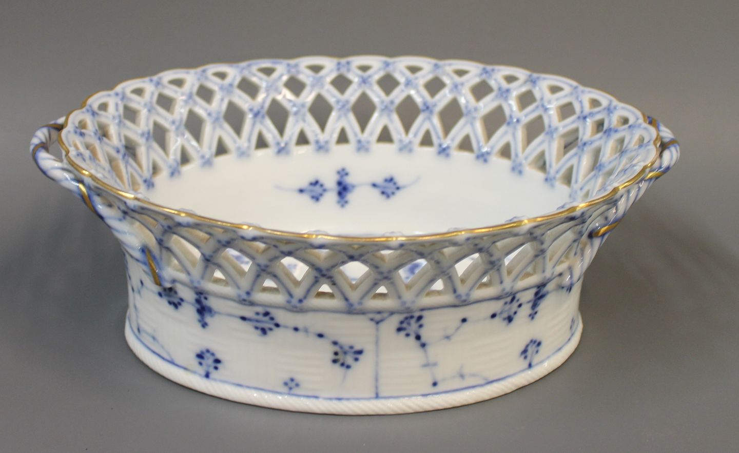 Lace pierced fluted oval bowl with gold very old from before 1923 in perfect condition height 5000 m2 showroom