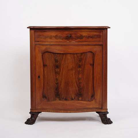 Antikt skab fra 1920'erne, fremstillet i håndpoleret mahogni med detaljeret intarsia af frugttræ. Dette smukke skab kombinerer høj kvalitet af materialer med tidens klassiske håndværk og viser en udsøgt balance mellem æstetik og funktionalitet.