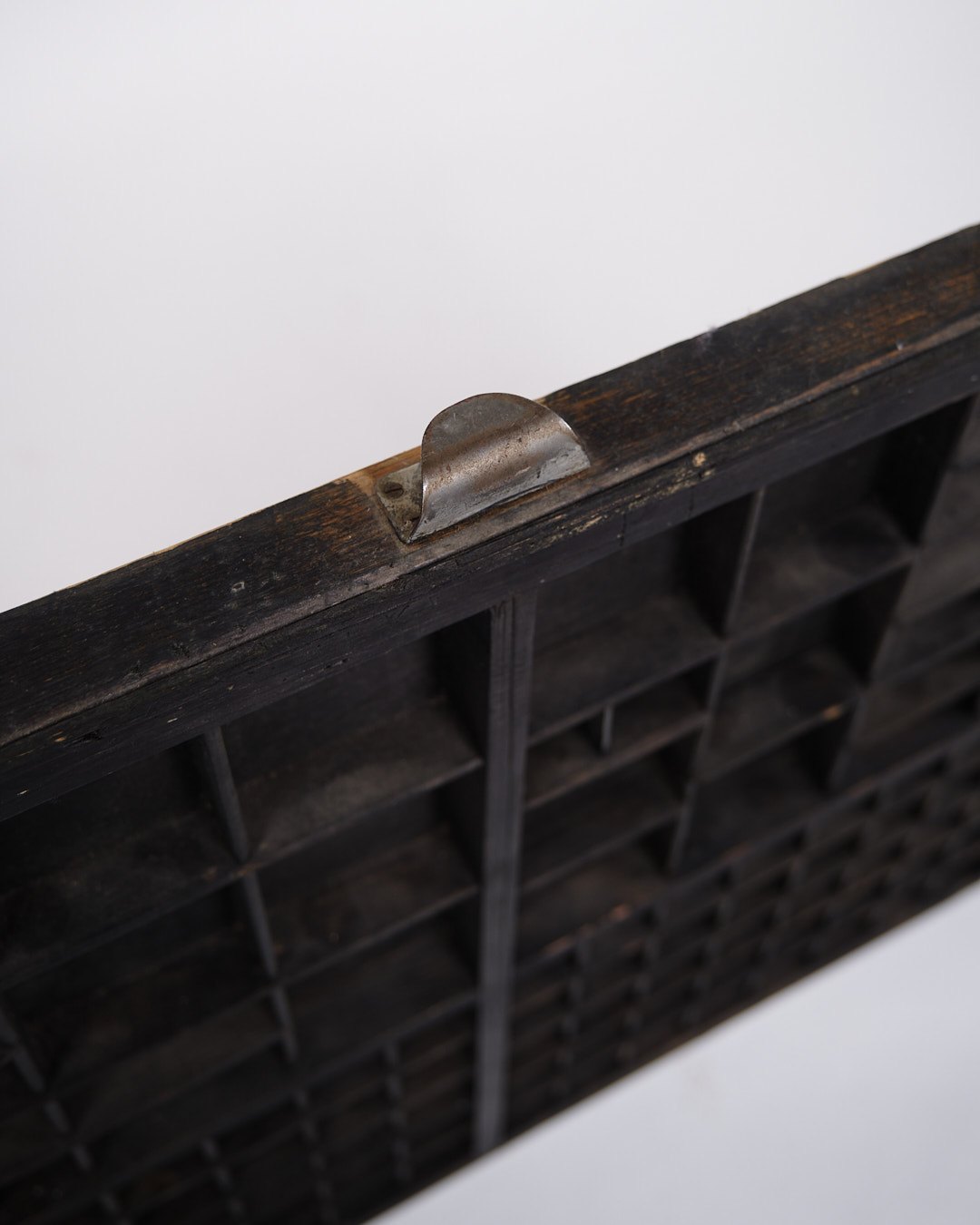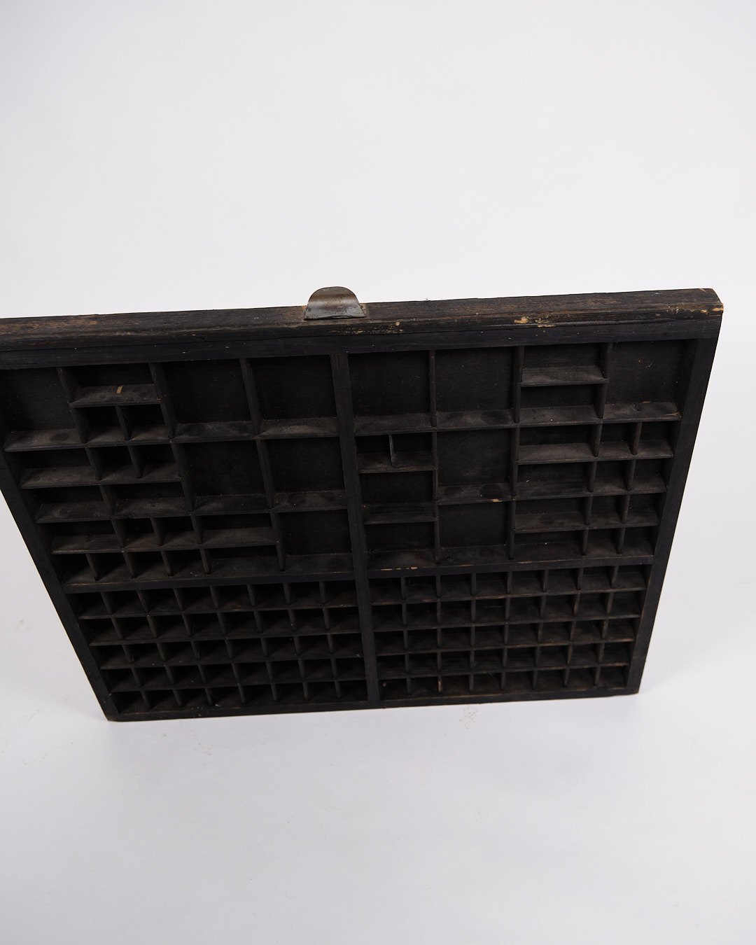 Old wall-mounted planter box from the 1930s. Black painted wood with small compartments.