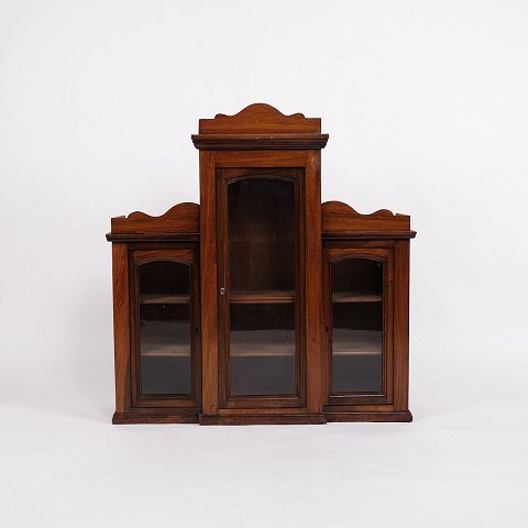 Small antique console/hallway cabinet from the 1880s. Mahogany and walnut with round legs.