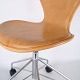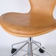 Arne Jacobsen Syver office chair, model 3117, for Fritz Hansen. Patinated natural leather and chrome frame with wheels. Classic Danish design.
