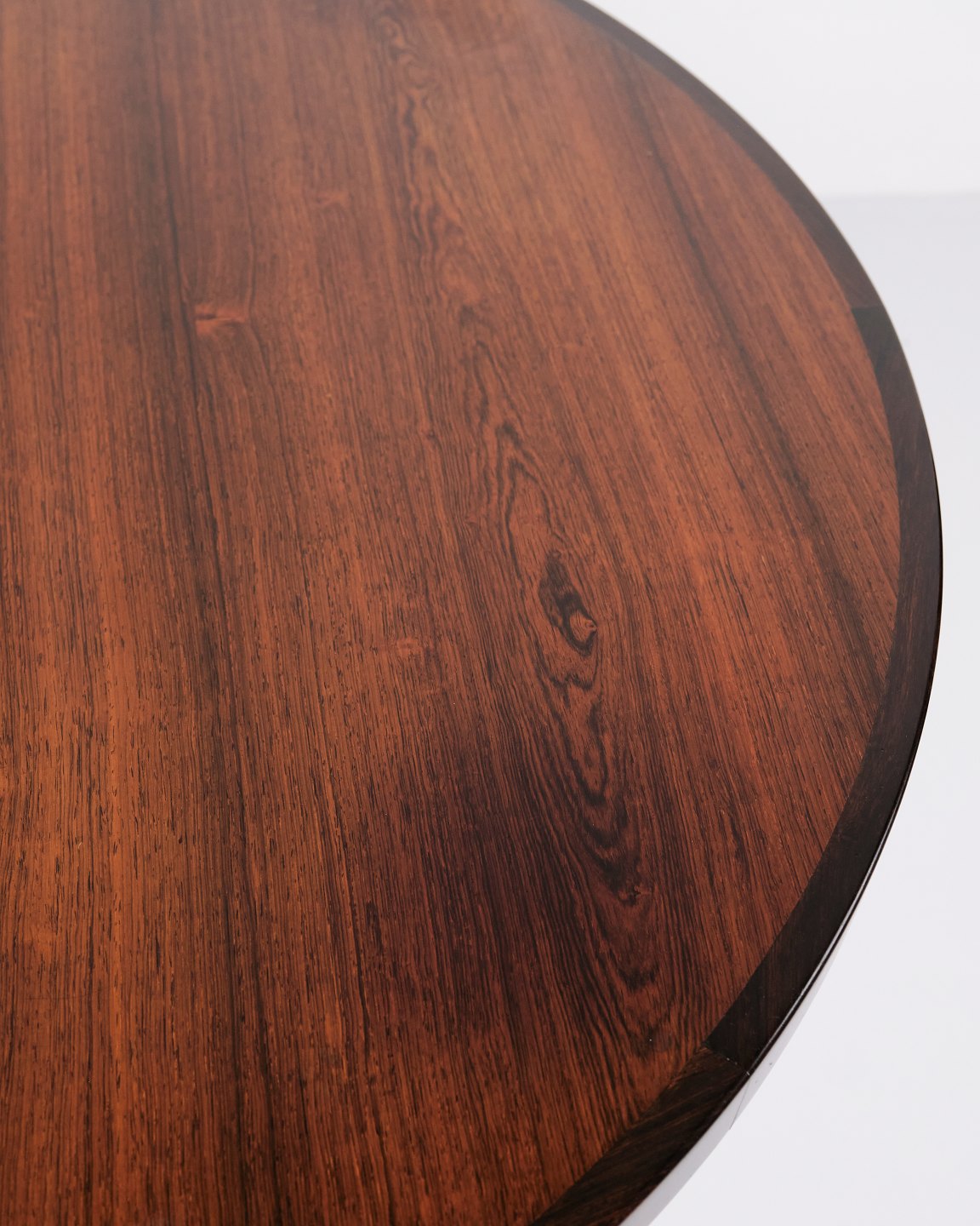 Round dining table in rosewood by C.J. Rosengaarden. Danish design from the 1960s. Extension with two leaves of 50 cm.