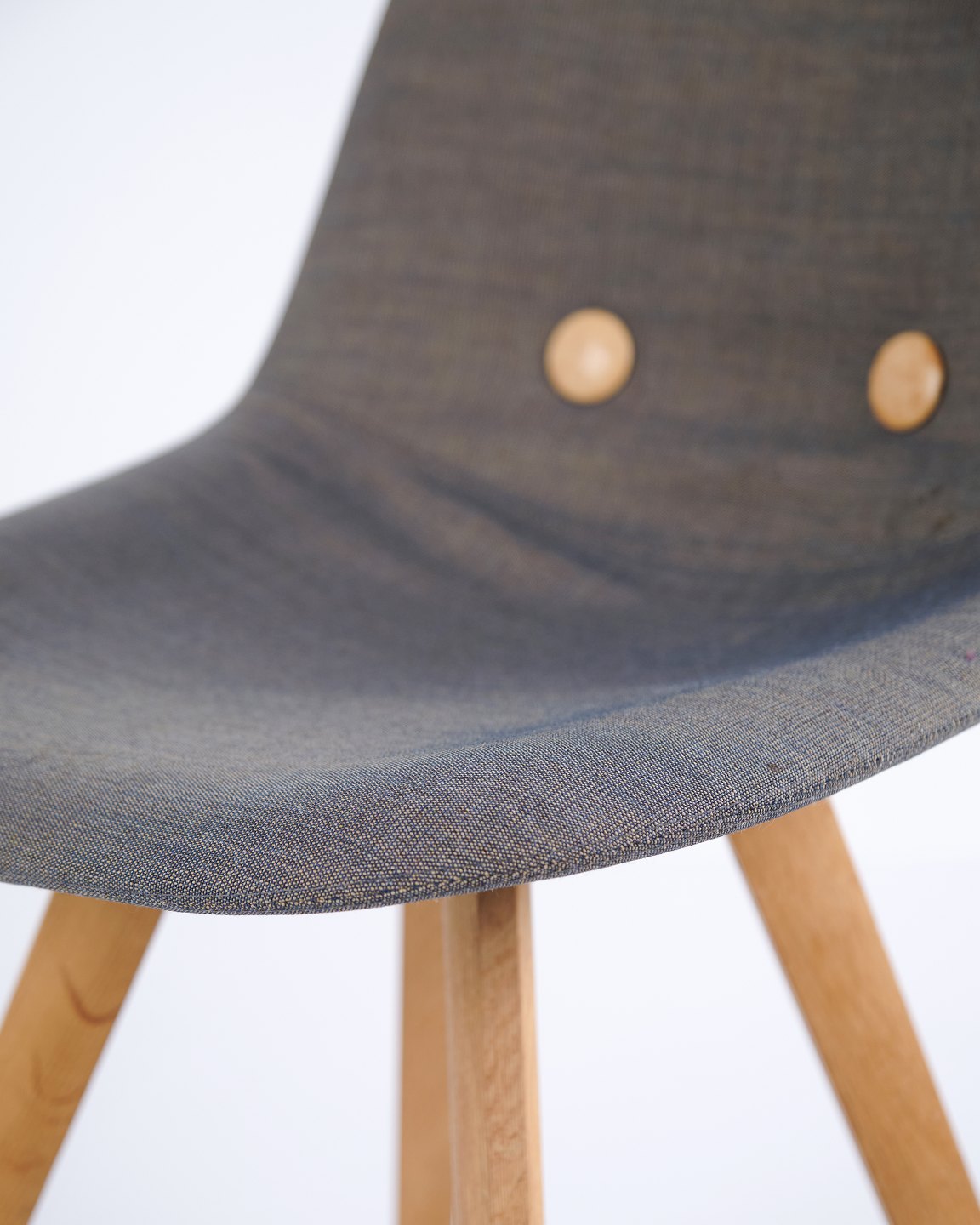 Eyes Wood chair by Erik Jørgensen with mid-grey upholstery and solid wood legs. A modern dining chair offering good seating comfort and high-quality materials.