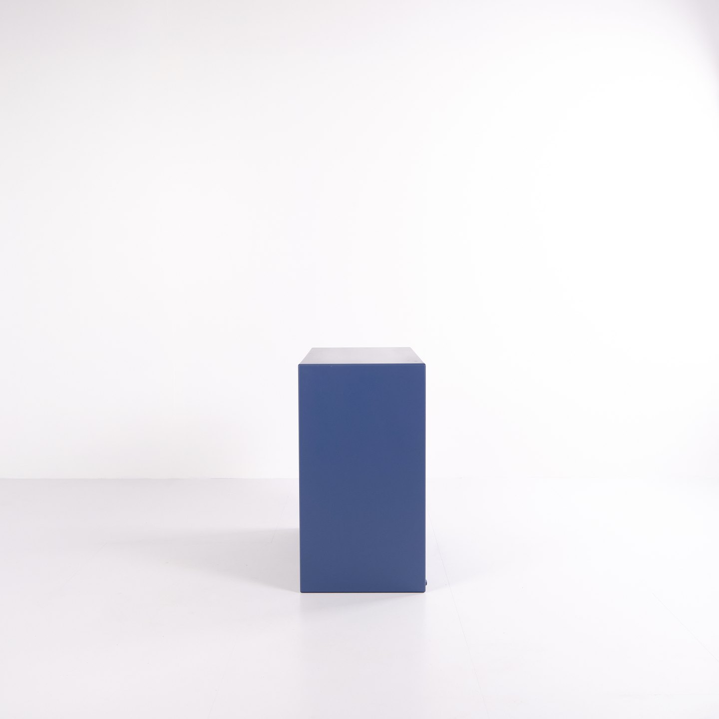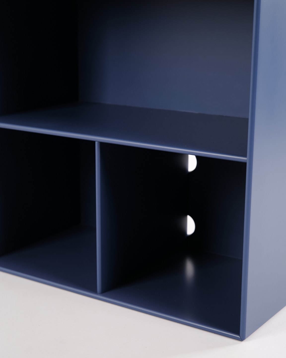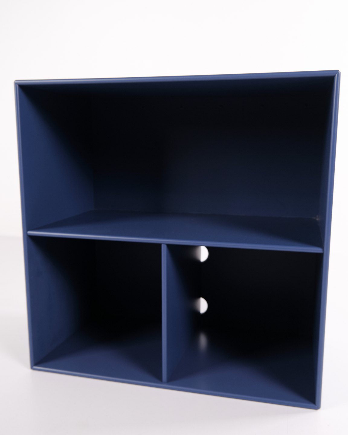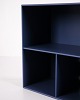 Montana shelf unit in blue with chrome legs. Features three open shelves, ideal for storage or display in a living room, office or hallway. A classic Montana module with simple structure and high functionality.