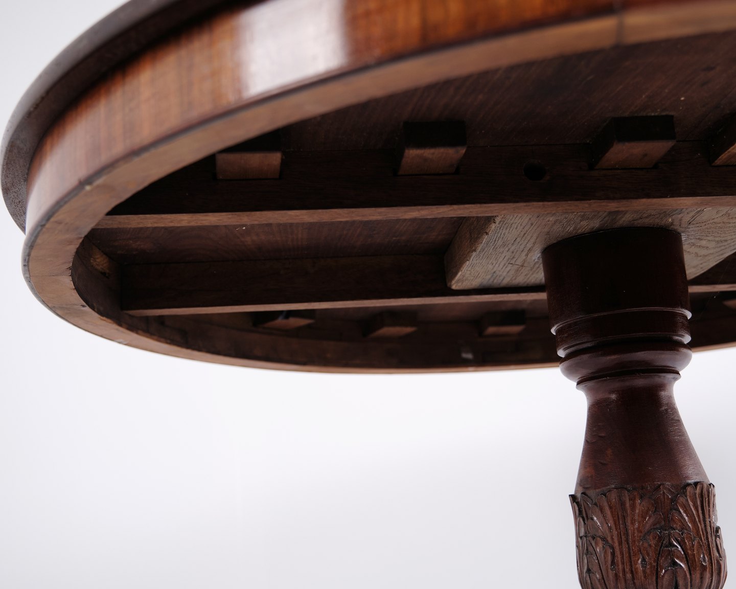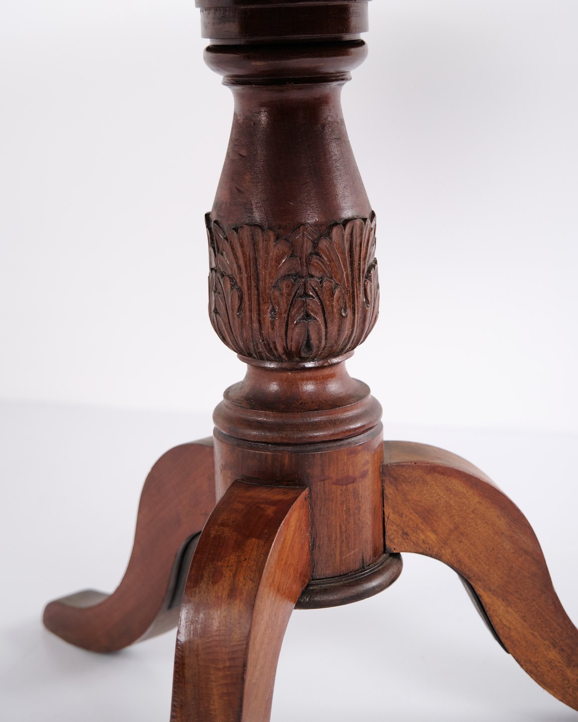 Entrance or lobby table from the 19th century, crafted in mahogany as a classic pedestal table with a round top. A decorative and period-characteristic piece suitable for hallways, lobbies, or living spaces. Solid wood and elegant craftsmanship.