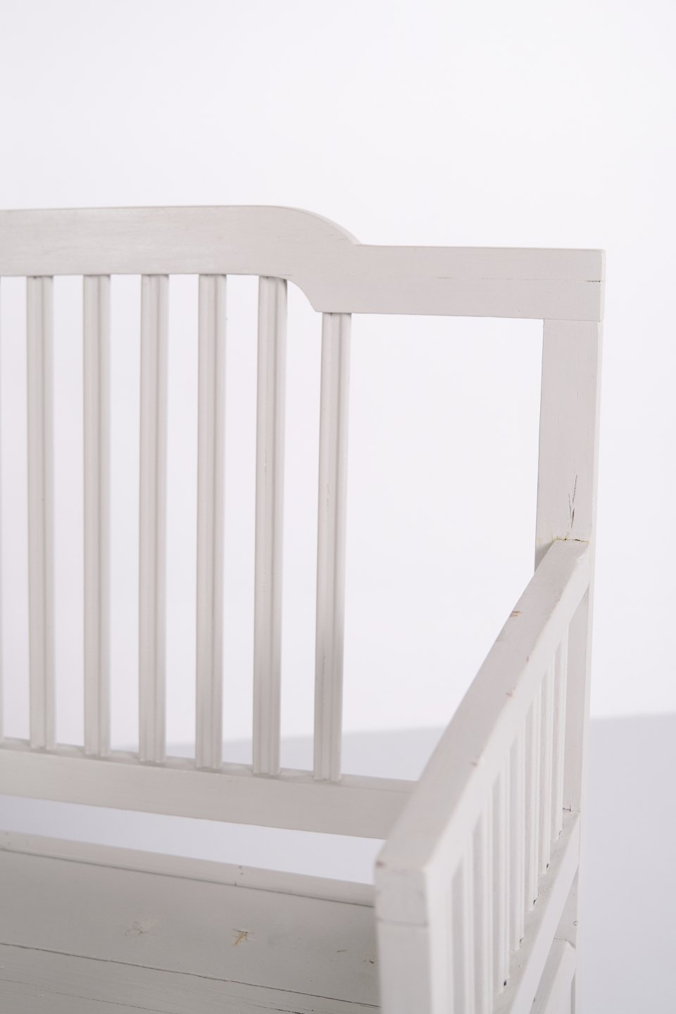 Antique Storage Bench With High Back – Grey Painted – Pine Wood – 1860s