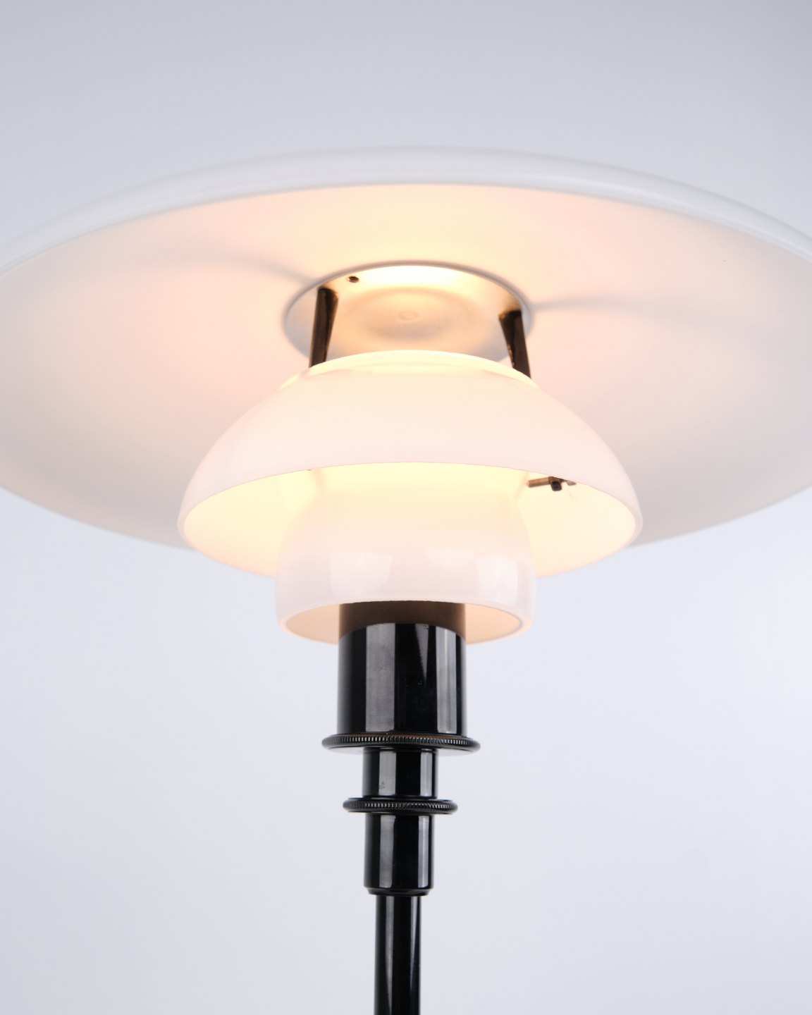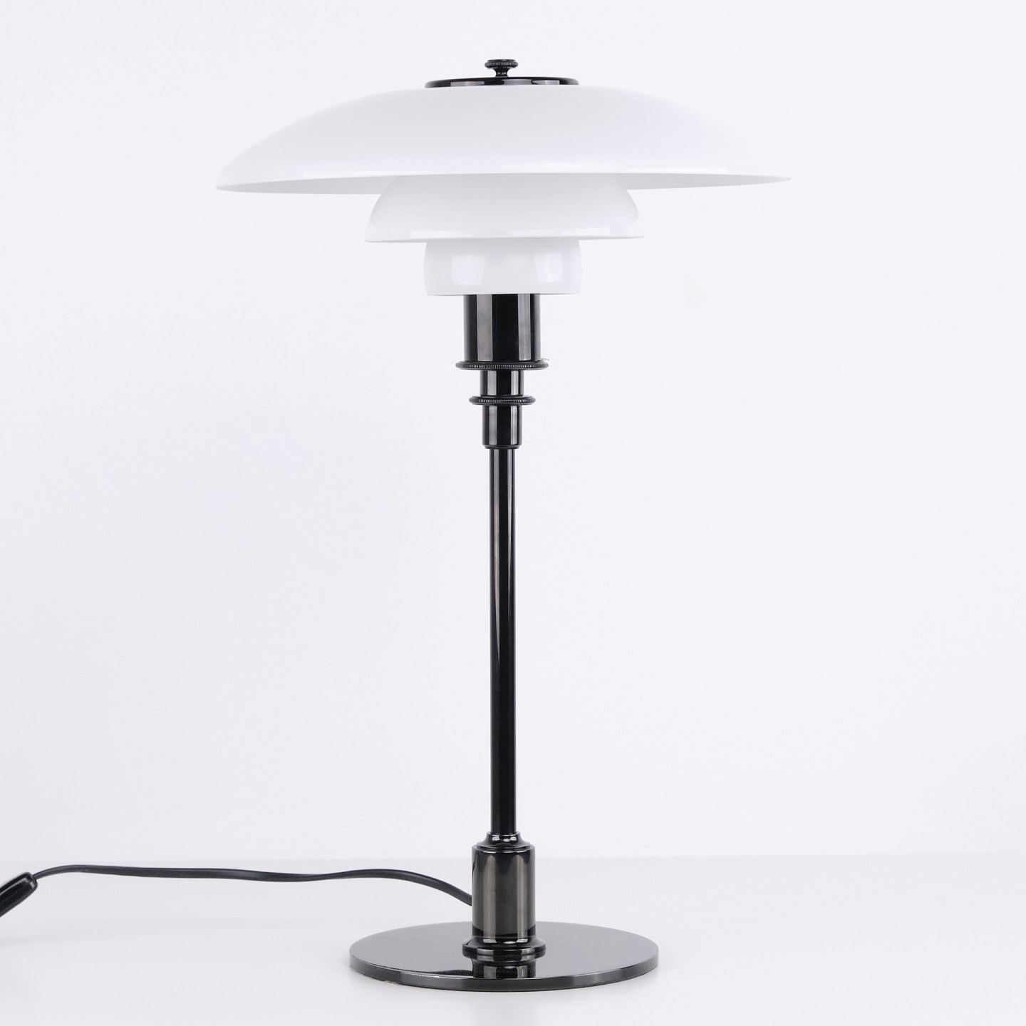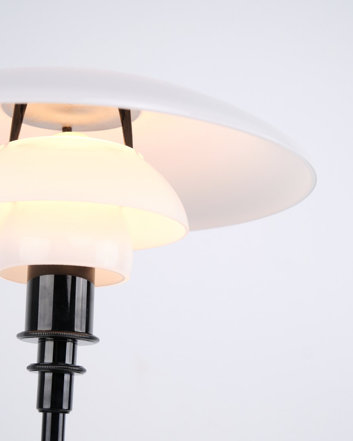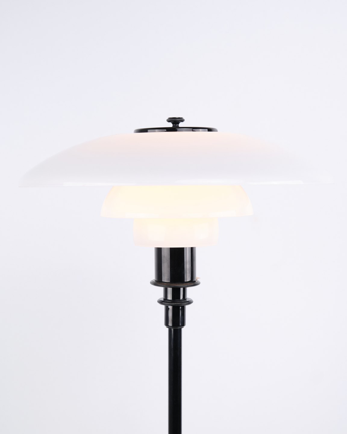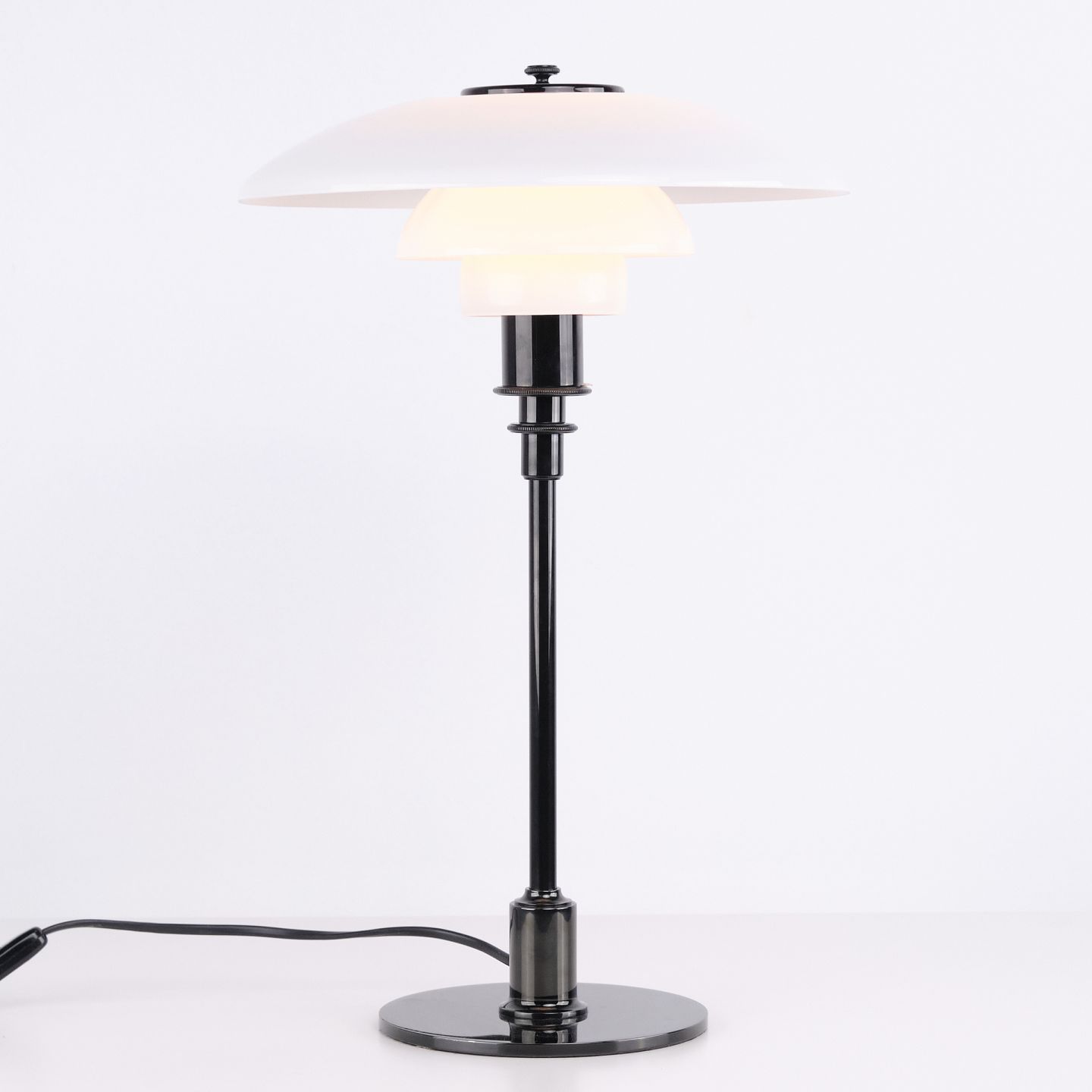 PH 3/2 table lamp in black metallised brass from Louis Poulsen. Designed by Poul Henningsen with classic Danish lighting design and an elegant appearance.