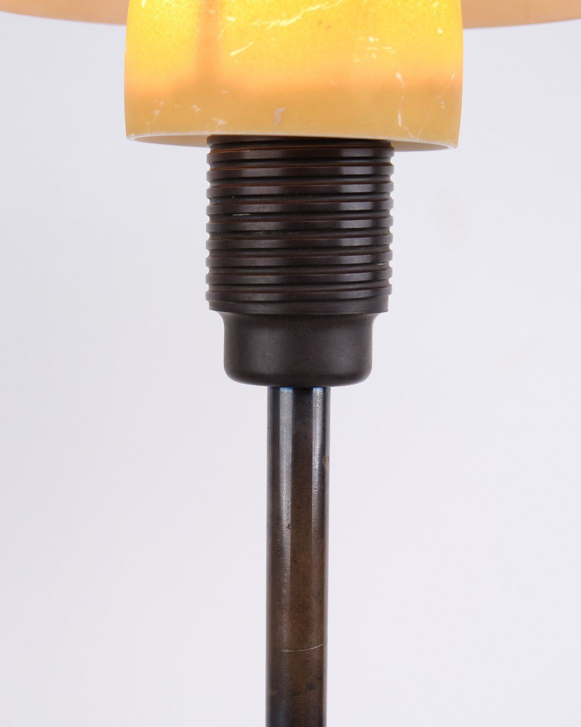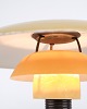 PH 3½/2½ table lamp designed by Poul Henningsen and manufactured by Louis Poulsen in the 1930s. The lamp features a yellow metal top shade with middle and lower shades in yellow-painted opal glass, creating a warm and distinctive light. The combination of materials and colours highlights the lamp’s functional and decorative character.