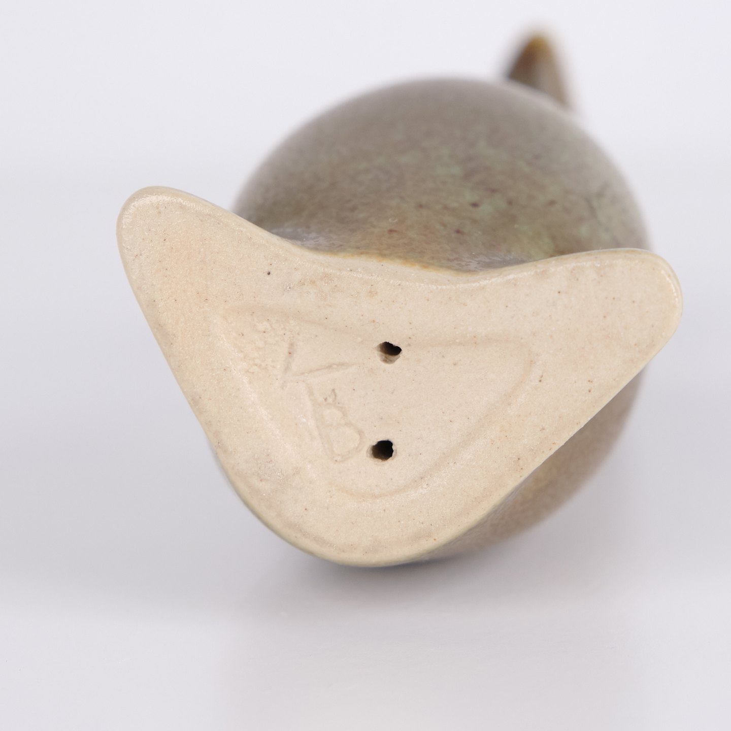 Bird figure by Knud Basse made in glazed ceramic. The model has an organic design language with long neck and stylized expression, characteristic of Knud Basse’s popular animal figures. Danish art pottery and collector’s item from the mid-century period. Knud Basse is especially known for ceramic animal figures, particularly bird motifs.