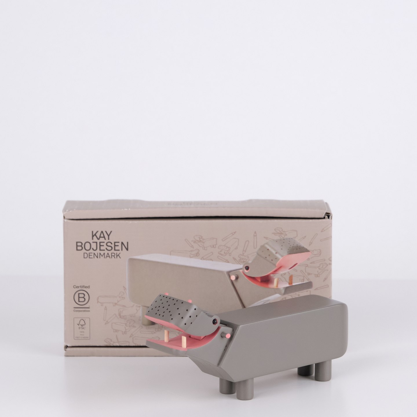 Lilliput Hippopotamus designed by Kay Bojesen in grey painted finish. Anniversary edition launched to mark the 70th anniversary of the original hippopotamus from 1955. Produced in FSC-certified beech wood and made in a smaller size than the classic version. Kay Bojesen’s wooden animals are among the most recognized design objects within Danish design and collector’s items.