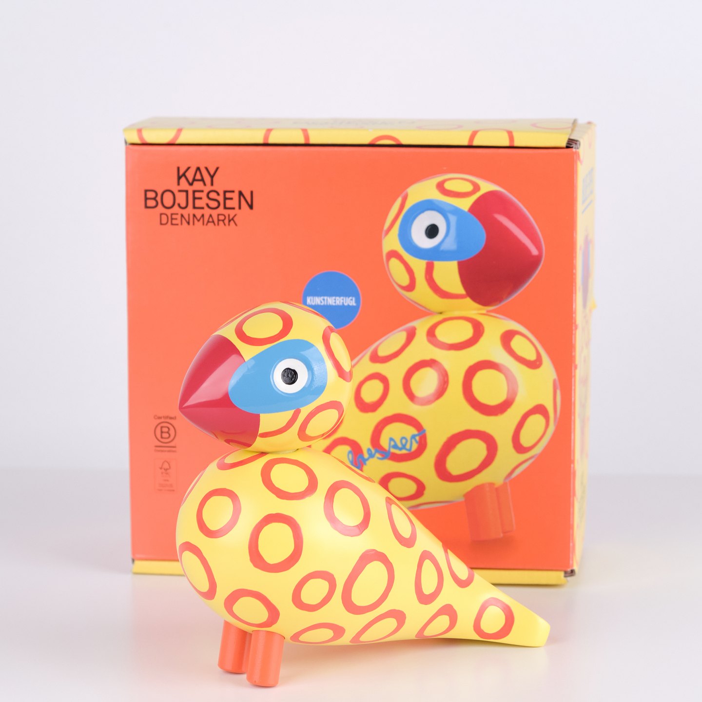 Songbird Blue Eyes created as a collaboration between Kay Bojesen and Leif Sylvester. The figure is made of painted wood with multicoloured decoration and the Blue Eyes motif. The series continues Kay Bojesen’s well-known wooden figures and combines classic Danish design with Leif Sylvester’s colourful universe. A decorative collectible and a fine example of a modern interpretation of Danish design heritage.