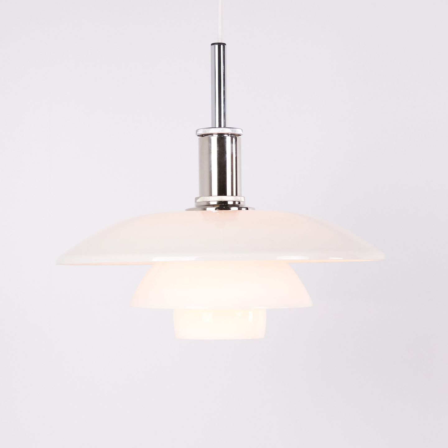 PH 4½-4 Pendant in White Opal Glass and Chrome, Poul Henningsen for Louis Poulsen