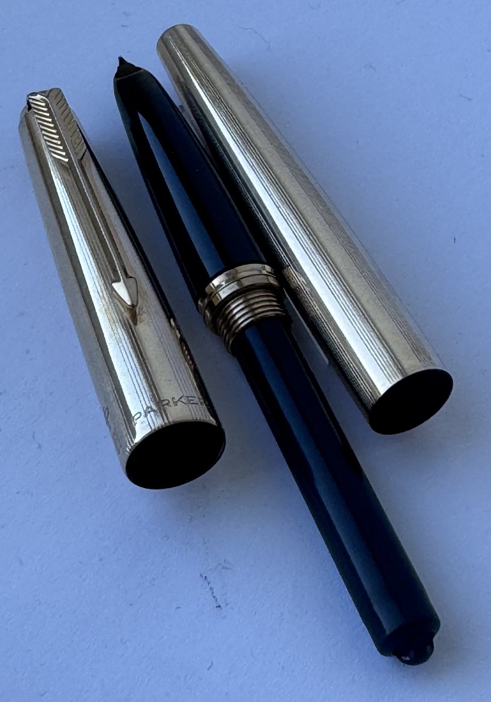 Gold-double Parker 61 fountain pen. Ready to be used. Appears in good and functional condition. Used very little. No special signs of wear. L. 13.3 cm
