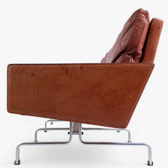PK 31/3 - 3 pers. sofa i patineret originalt rødt læder med stel i stål.