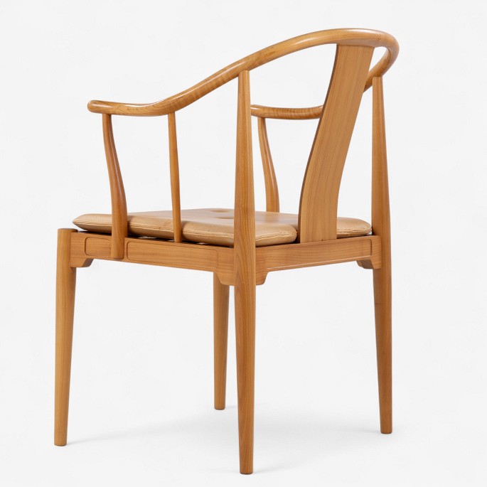 FH 4283 - Chinese chair in cherry with cushion in patinated natural leather. Manufacturer's mark.