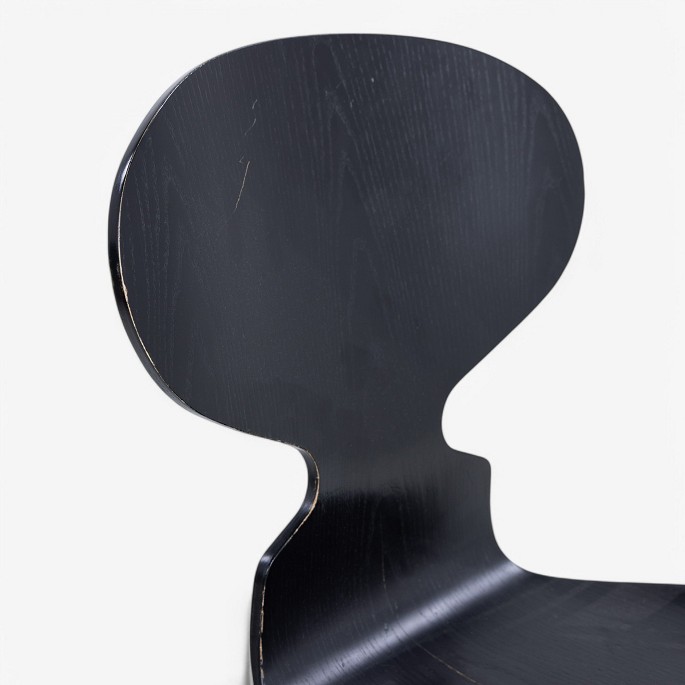 AJ 3100 - Set of 4 black-glazed Ant chairs with steel frame.