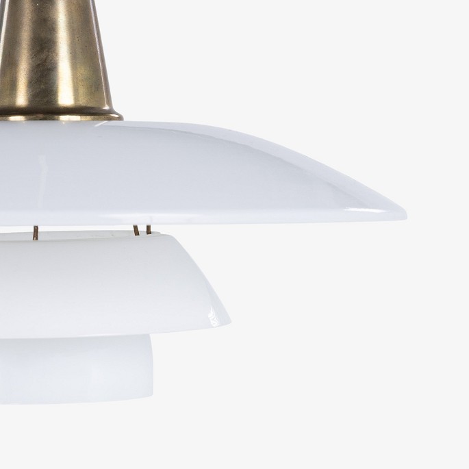 PH 4/3 - Pendant lamp with white glass shades and brass handle.