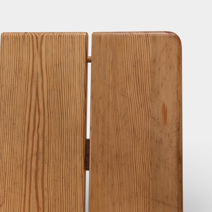 Bench in solid, varnished pine. Manufacturer's mark.