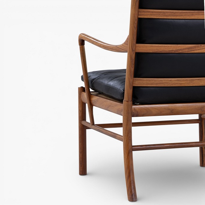 PJ 149 - 'Colonial Chair' armchair in rosewood with cushions in patinated black leather. Manufacturer's mark.