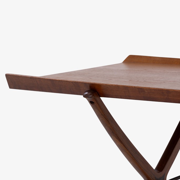 Rare 'X' coffee table with patinated teak top with fluted edge on cross frame. Manufacturer's stamp.
