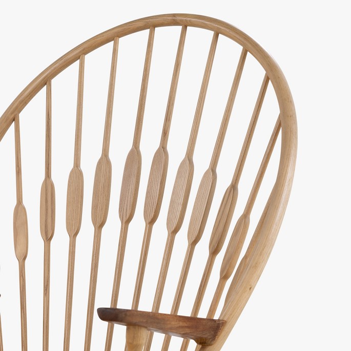 JH 550 - 'Peacock Chair' armchair in patinated ash with teak armrests and woven paper yarn seat. Branded by manufacturer.