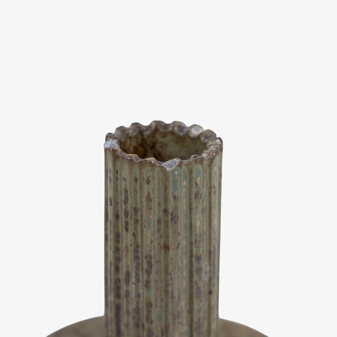 Model AB 133 - Candlestick in fluted stoneware with green/brown glaze. Signed.