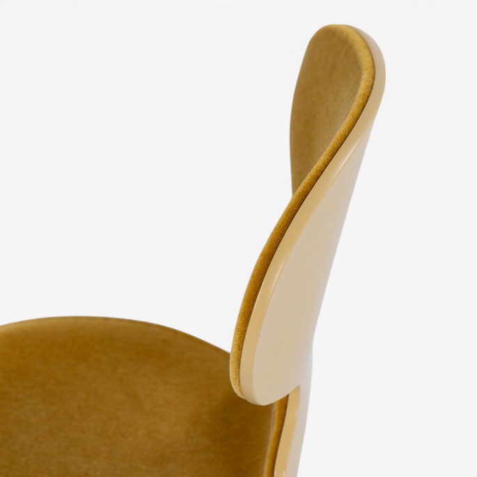 AJ 3100 - 'Ant chair' painted in 'RAL 1002' and front upholstered in 'Byram 471' fabric.