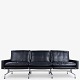 PK 31/3 - Newly upholstered 3-seater sofa in black KLASSIK leather with stainless steel frame.