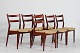 Helge Sibast (1908-1985) 6 dinning chairs model 59 made of rosewood with seats of light colored wool Manufacturer: Sibast Møbler Height: 81/43 cm Width: 48 cm Depth: 51 Nice vintage condition after normal use