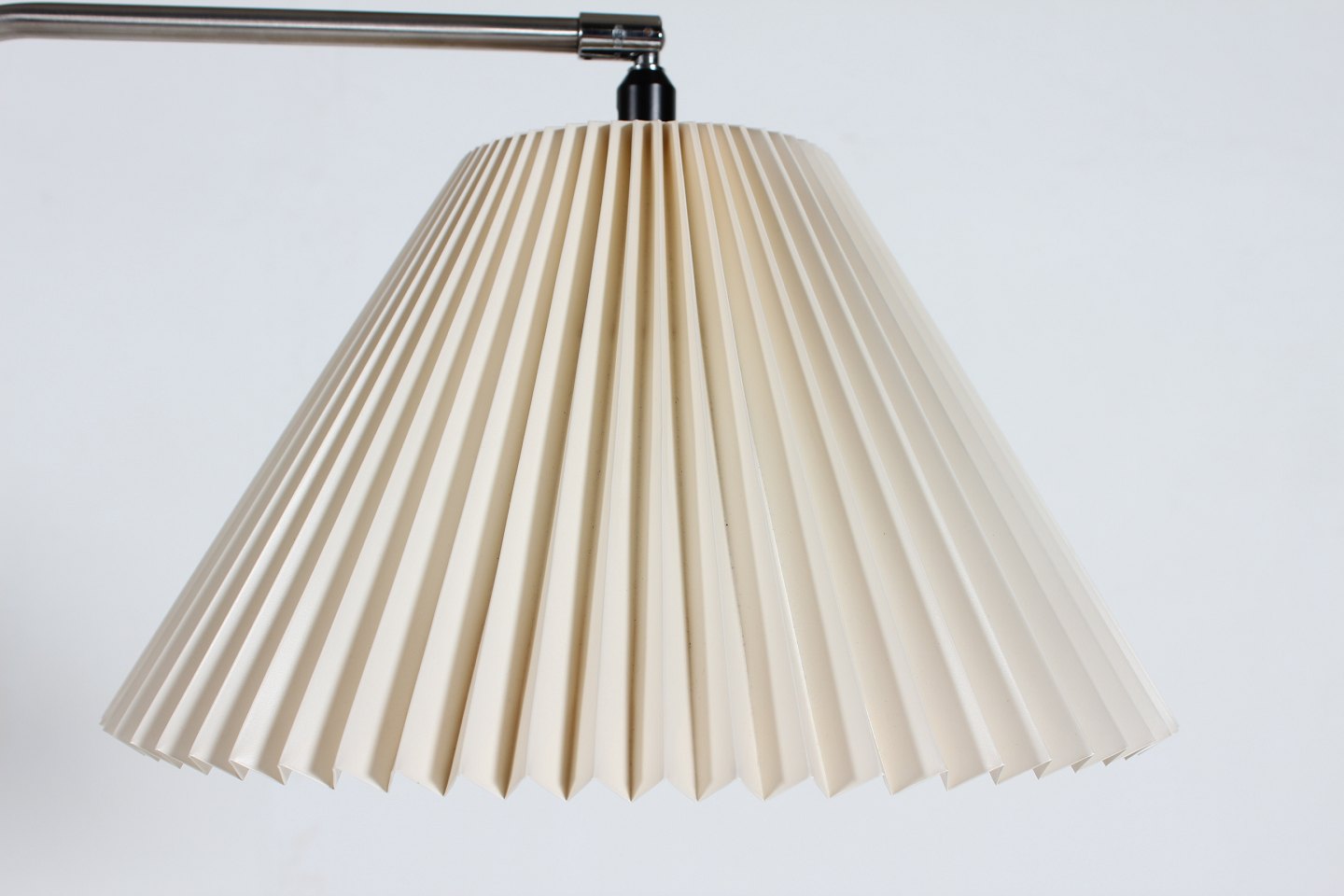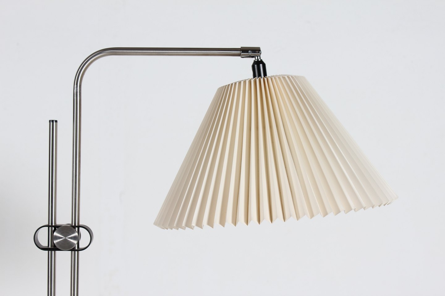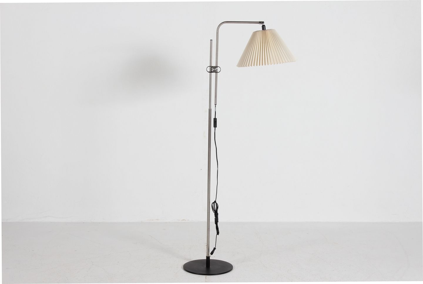 Le Klint and Michael Bang Height adjustable floor lamp model 321 Stem of chromium plated steel, base metal with black lacquer and original Le Klint shade Height 150 cm Nice vintage condition with full function