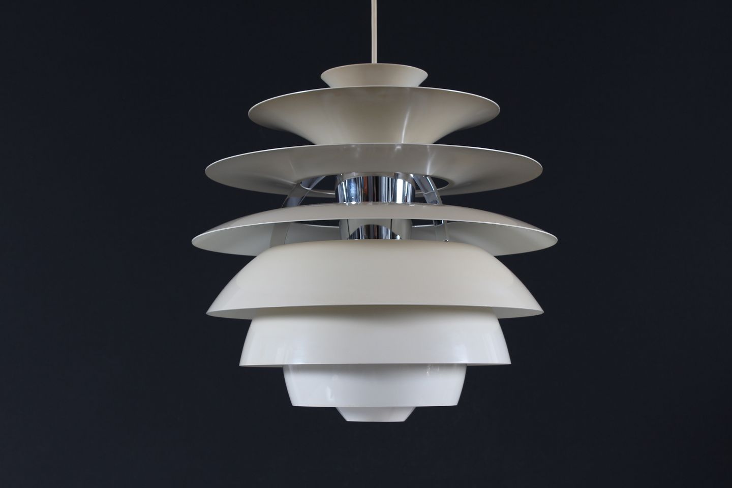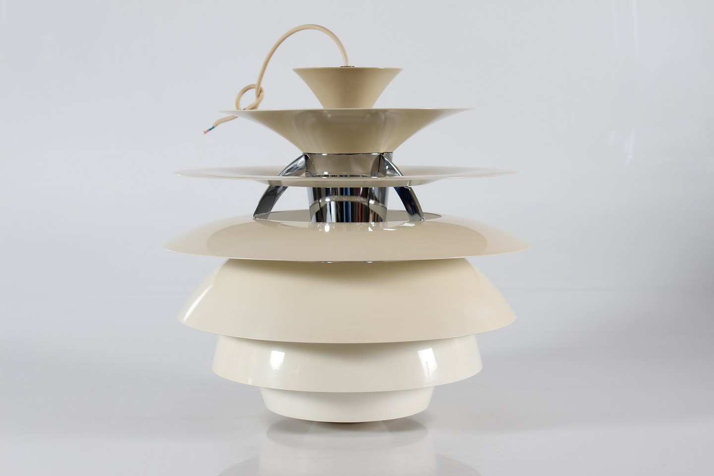 Poul Henningsen (1894-1967) Snowball Pendant Ceiling Light made of metal with ivory colored lacquer Manufacturer: Louis Poulsen A/S Height 40 cm Diameter 40 cm Very good condition with full function