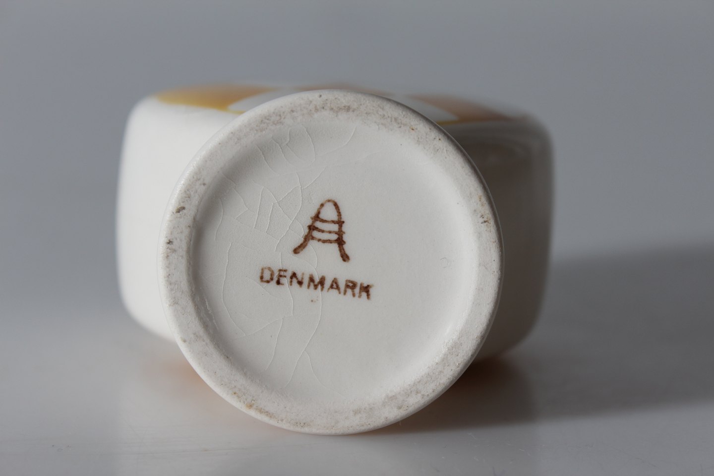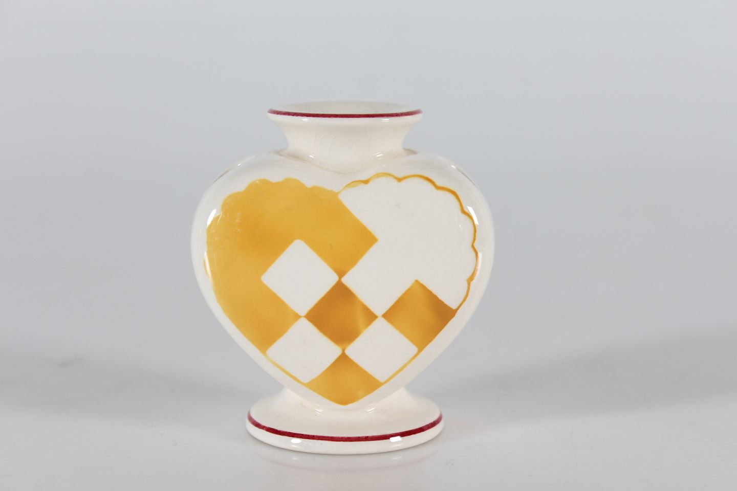 Aluminia Christmas heart Heart shaped candlestick made of faience with yellow decoration Height 7,8 cm Nice vintage condition with a little crackling