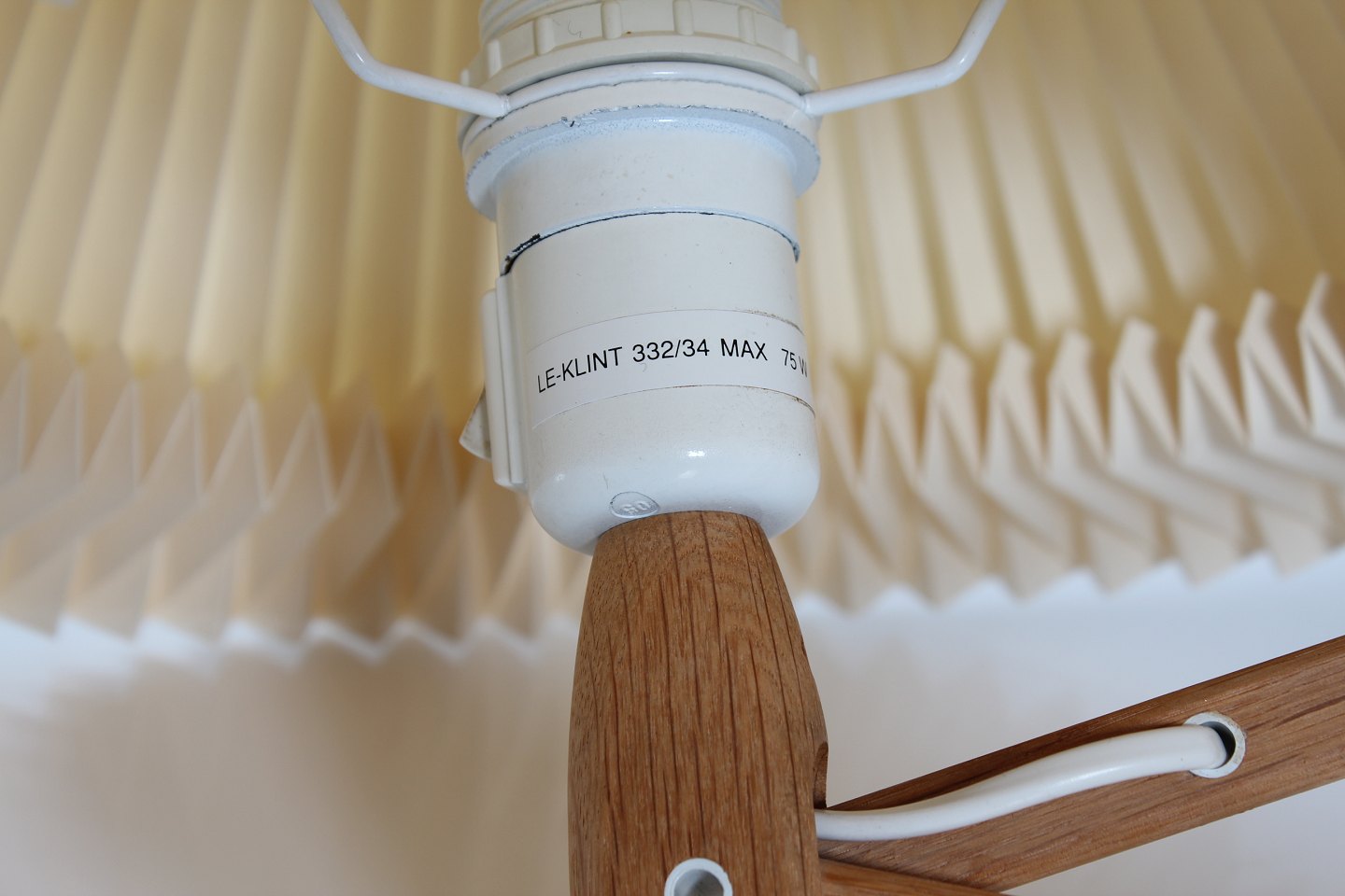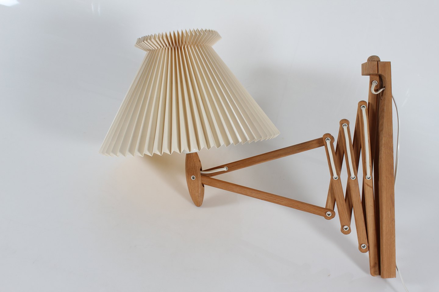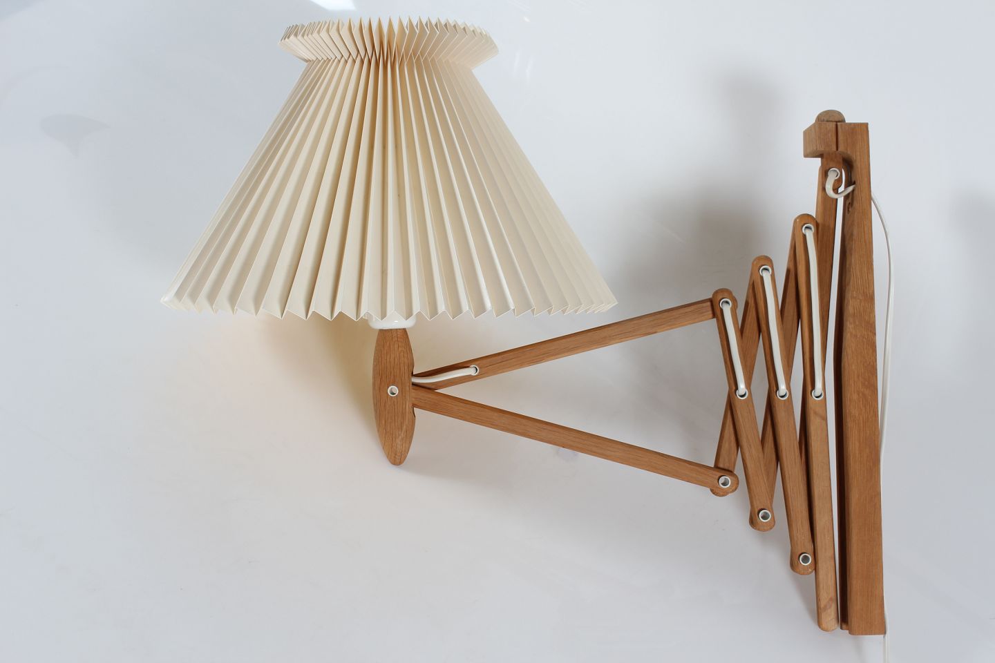 Erik Hansen for Le Klint Wall Scissor/Accordion Extensible lamp model 232/34 made of oak with original Le Klint shade Design by Erik Hansen in 1952 Height 40 cm Length ca. 100 cm Good vintage condition with full function