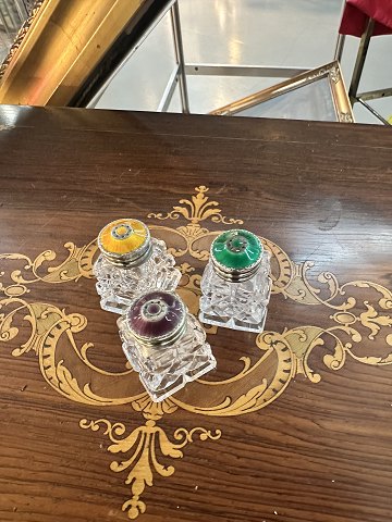 Crystal salt shaker, sterling silver top with enamel, art deco, 1920s, nice and good condition