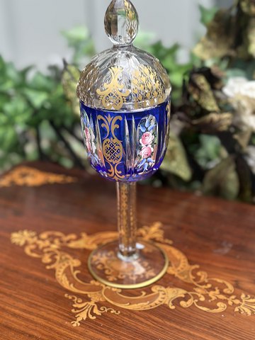 Bohemia crystal goblets with lids made of overflow glass, hand-cut lead crystal, enamel and gold, from the Rococo period Height 18 cm