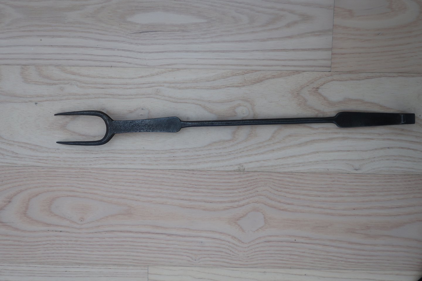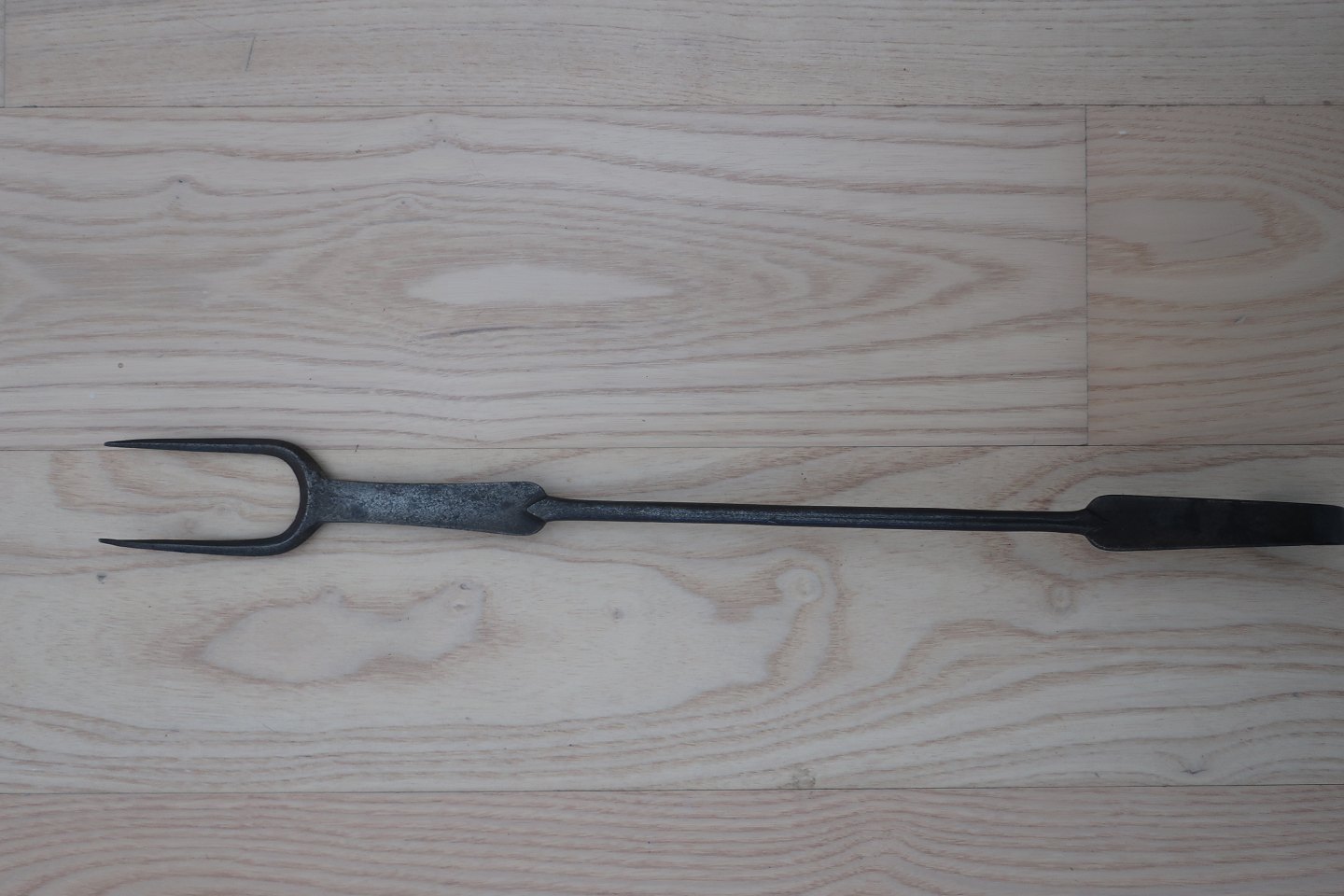 An antique fork Handmade of iron Perfect by the grill and ekstra good by the fire L: 47cm About 1850 In a good condition Articleno.: 2-52521