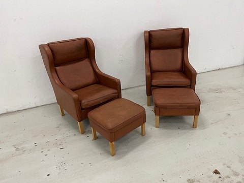 Mogens Hansen MH195 wingback chairs with matching footstoolsCognac-colored ...
