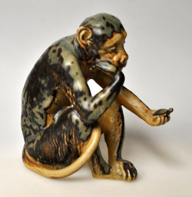 Bing & Grondahl figurine, 20th century. Copenhagen, Denmark: A monkey with a turtle. ...