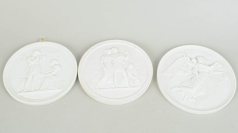 Royal Copenhagen, set of three biscuit wall plaques after Thorvaldsen.